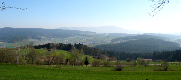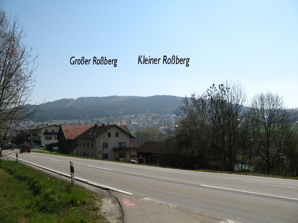 Im Sattel zwischen den beiden Kuppen liegt die kleine Ortschaft “Roßberg”.